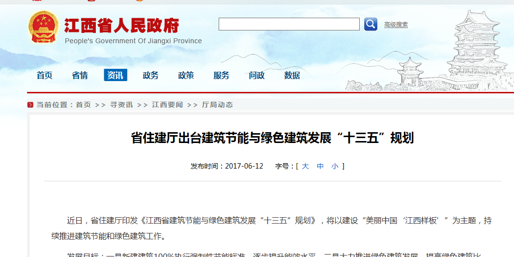 近日,省住建廳印發(fā)《江西省建筑節(jié)能與綠色建筑發(fā)展“十三五”規(guī)劃》,將以建設(shè)“美麗中國‘江西樣板’”為主題,持續(xù)推進(jìn)建筑節(jié)能和綠色建筑工作。